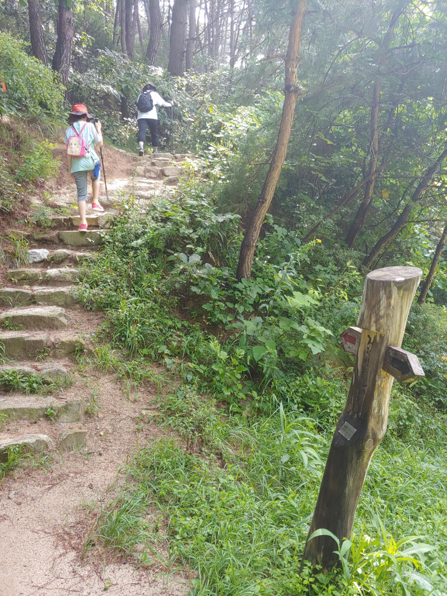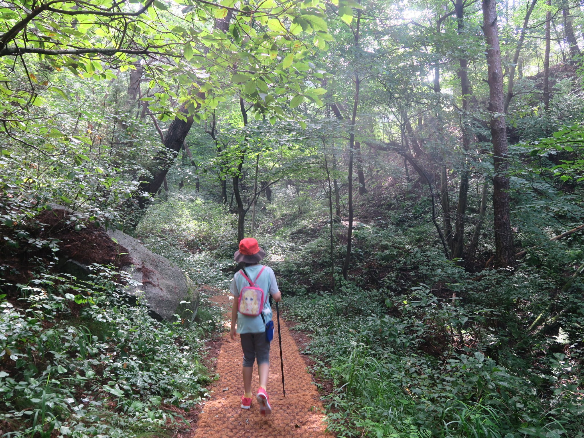 내송마을을 지나면 곧바로 산자락으로 접어든다. 비교적 아침 일찍 시작한다고 나섰지만 여름해는 아침부터 강렬하다. 산자락으로 들어가면서부터는 계속 오르막길이다. 구룡치까지는 계속 올라가는 길인데, 초반부터 오르막을 걷다 보니 아이가 금방 지치기 시작했다.