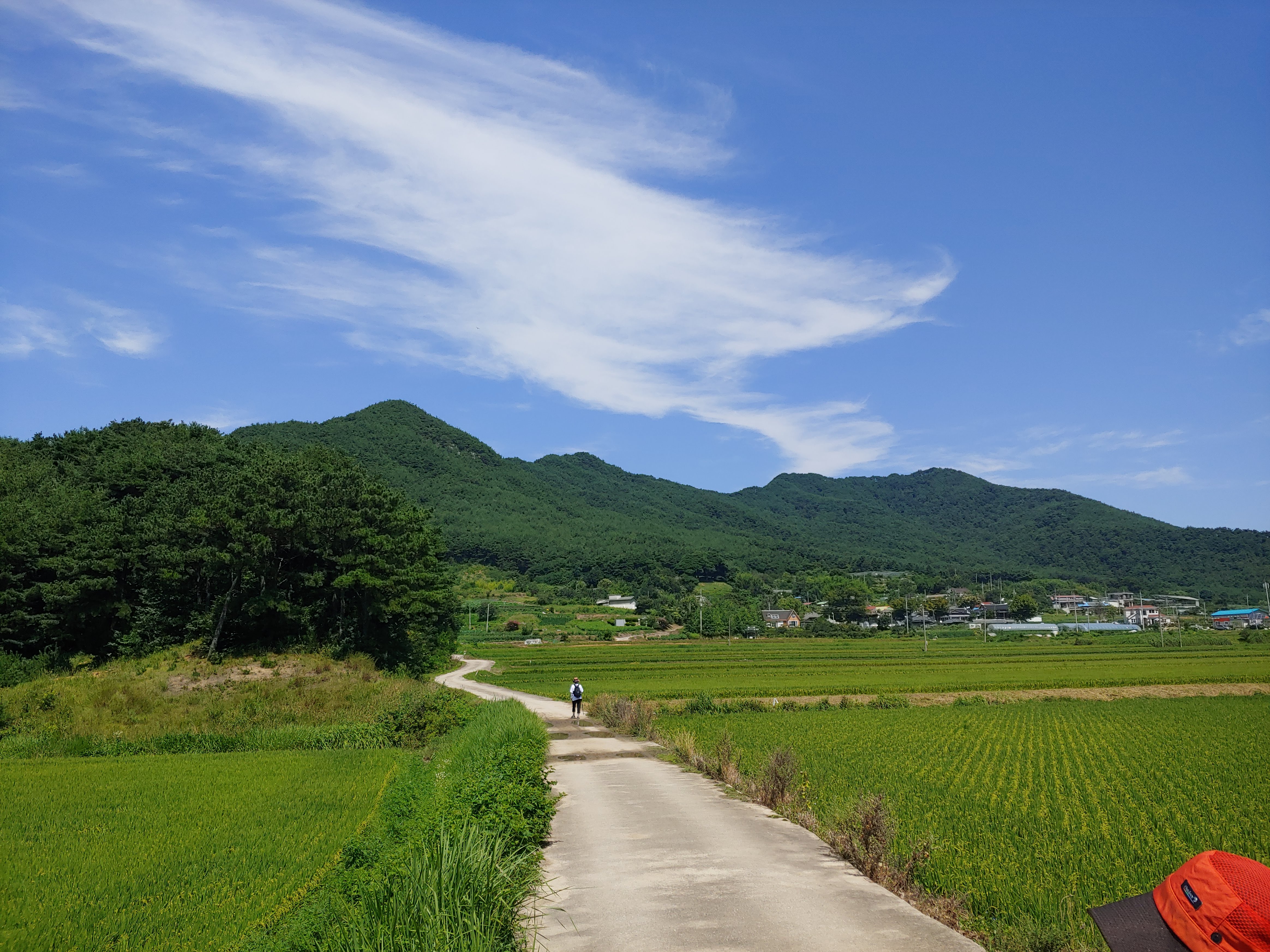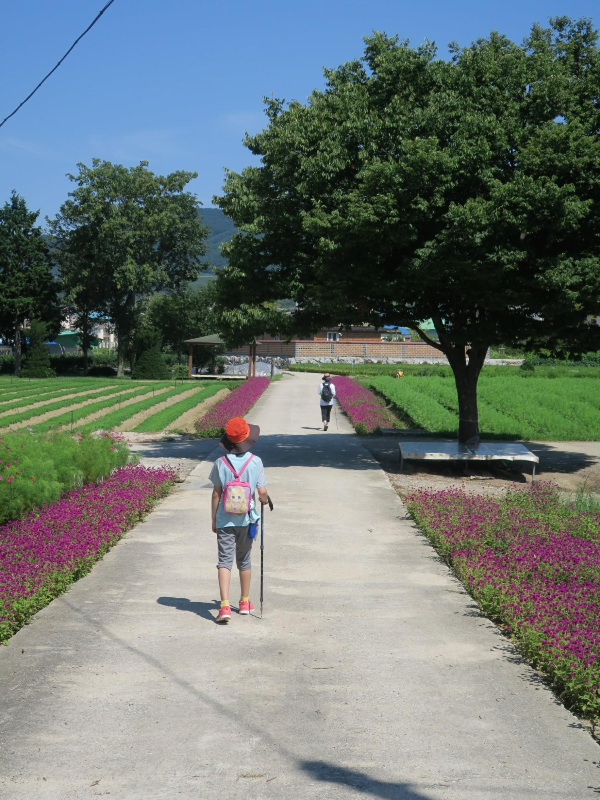 가장마을을 벗어나면서부터는 평지길이다. 그늘이 별로 없어 뜨거운 햇살을 그대로 받을 수도 있다. 다행스럽게도 이날은 바람이 좋았다. 해발 500m의 운봉고원을 가르는 바람은 너무나 시원해 뜨거운 햇살을 금새 식혀 주었다. 가지고 있는 스틱을 이용해 잠자리 낚시를 해 보면서 아이는 즐거워했다. 구룡치를 넘으며 숨이 넘어갈 것처럼 힘들어 하더니 금새 회복한 것이다. 아이의 회복력은 정말 놀랍다. 서로의 스틱과 모자와 어깨에 앉은 잠자리를 보면서 즐거워 하며 시골길을 걸었다.