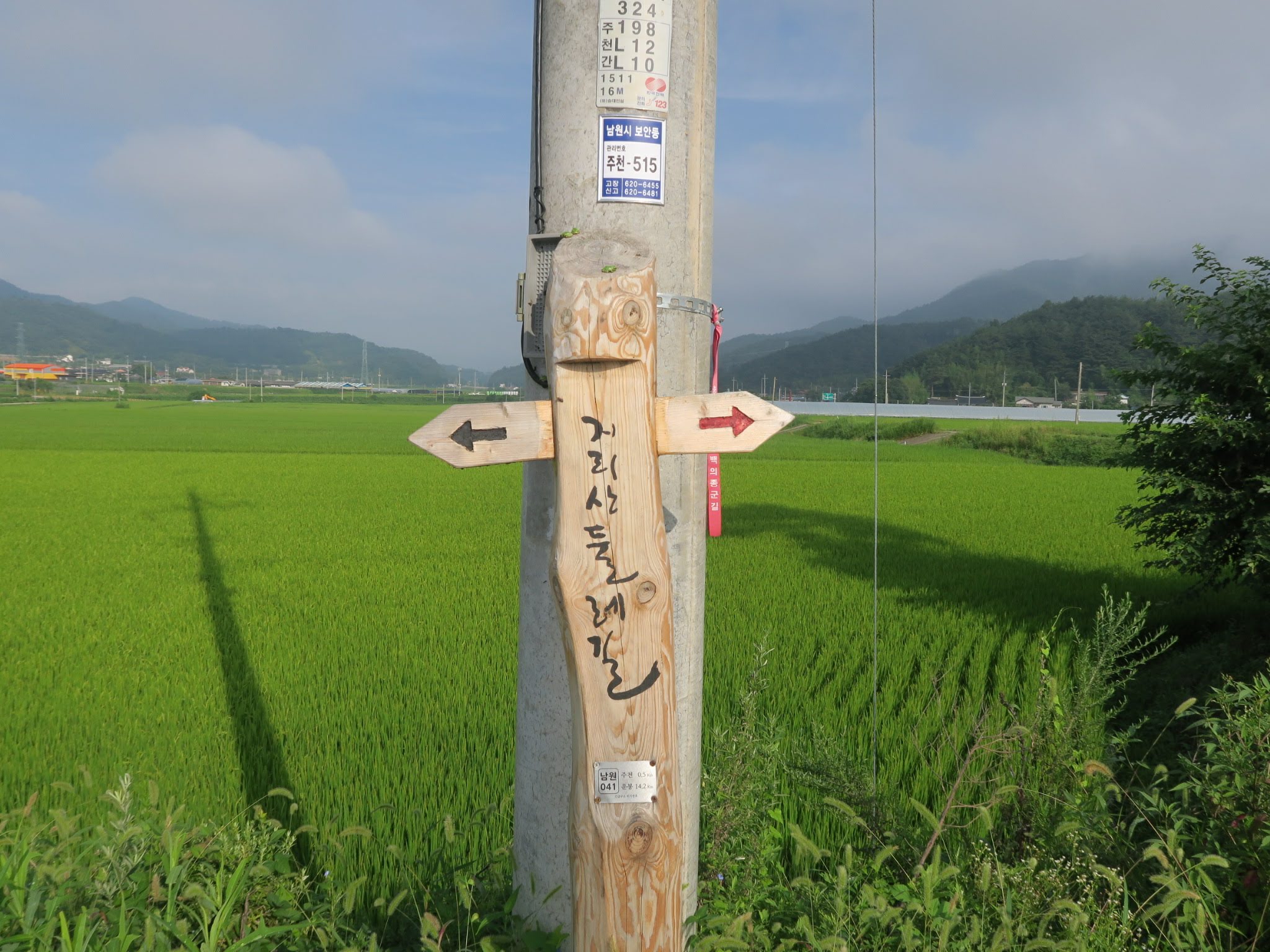 가장마을을 벗어나면서부터는 평지길이다. 그늘이 별로 없어 뜨거운 햇살을 그대로 받을 수도 있다. 다행스럽게도 이날은 바람이 좋았다. 해발 500m의 운봉고원을 가르는 바람은 너무나 시원해 뜨거운 햇살을 금새 식혀 주었다. 가지고 있는 스틱을 이용해 잠자리 낚시를 해 보면서 아이는 즐거워했다. 구룡치를 넘으며 숨이 넘어갈 것처럼 힘들어 하더니 금새 회복한 것이다. 아이의 회복력은 정말 놀랍다. 서로의 스틱과 모자와 어깨에 앉은 잠자리를 보면서 즐거워 하며 시골길을 걸었다.