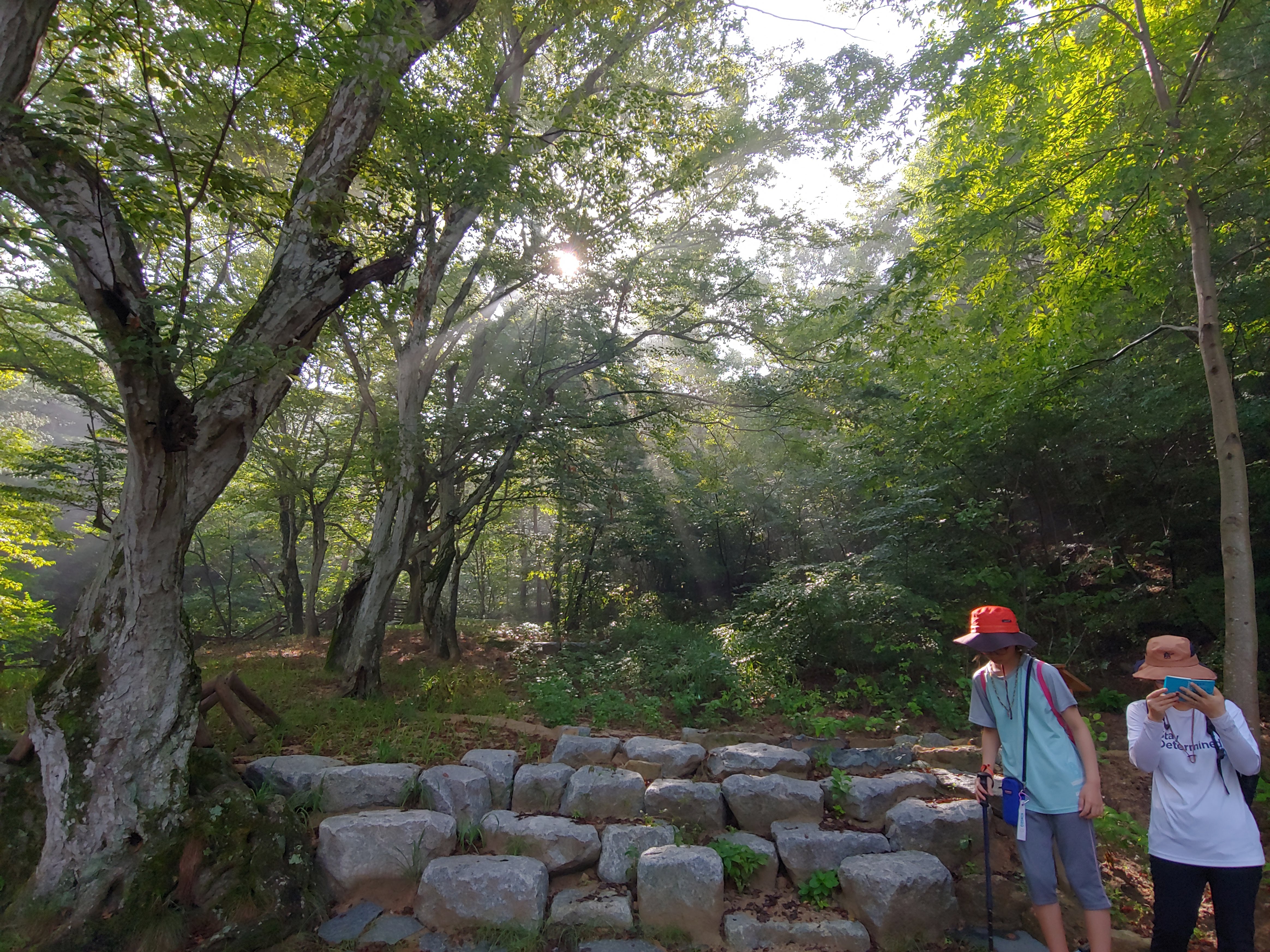내송마을을 지나면 곧바로 산자락으로 접어든다. 비교적 아침 일찍 시작한다고 나섰지만 여름해는 아침부터 강렬하다. 산자락으로 들어가면서부터는 계속 오르막길이다. 구룡치까지는 계속 올라가는 길인데, 초반부터 오르막을 걷다 보니 아이가 금방 지치기 시작했다.