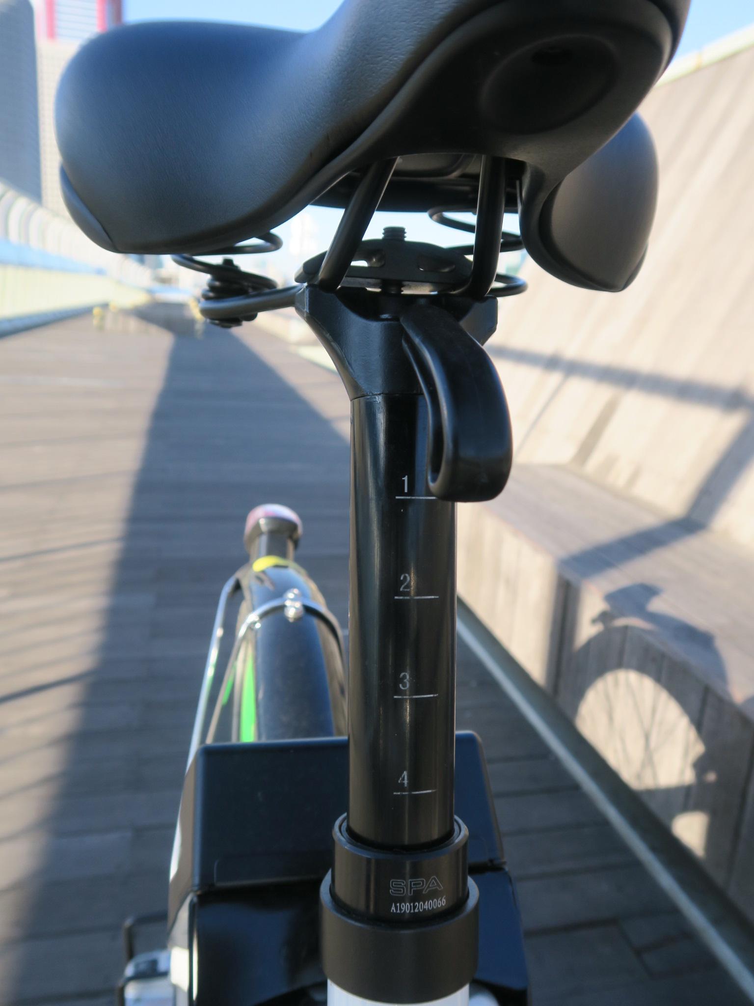 또하나, QR형 따릉이들은 안장의 높이 조절이 쉬워졌습니다. 이 부분은 따릉이를 처음 접하는 분들이 쉽게 지나치는 부분이기도 하죠. 기존 자전거들이 잠긴 나사를 풀어서 안장을 빼거나 넣은 후에 다시 나사를 꾹 잠가야 하는 번거로움 때문입니다. 그런데 이번 QR형은 보다 편리하게 한번의 조작으로 안장의 높이를 조절할 수 있도록 해 놓았네요. 다만 제가 탄 따릉이만 그런지는 알 수 없지만 안장의 최대 높이가 높지 않다는 점이죠. 173cm정도의 키는 그래도 이용하는데 큰 불편은 없지만 180cm를 넘어가는 장신은 안장높이가 낮다는 느낌을 받을 것 같네요.