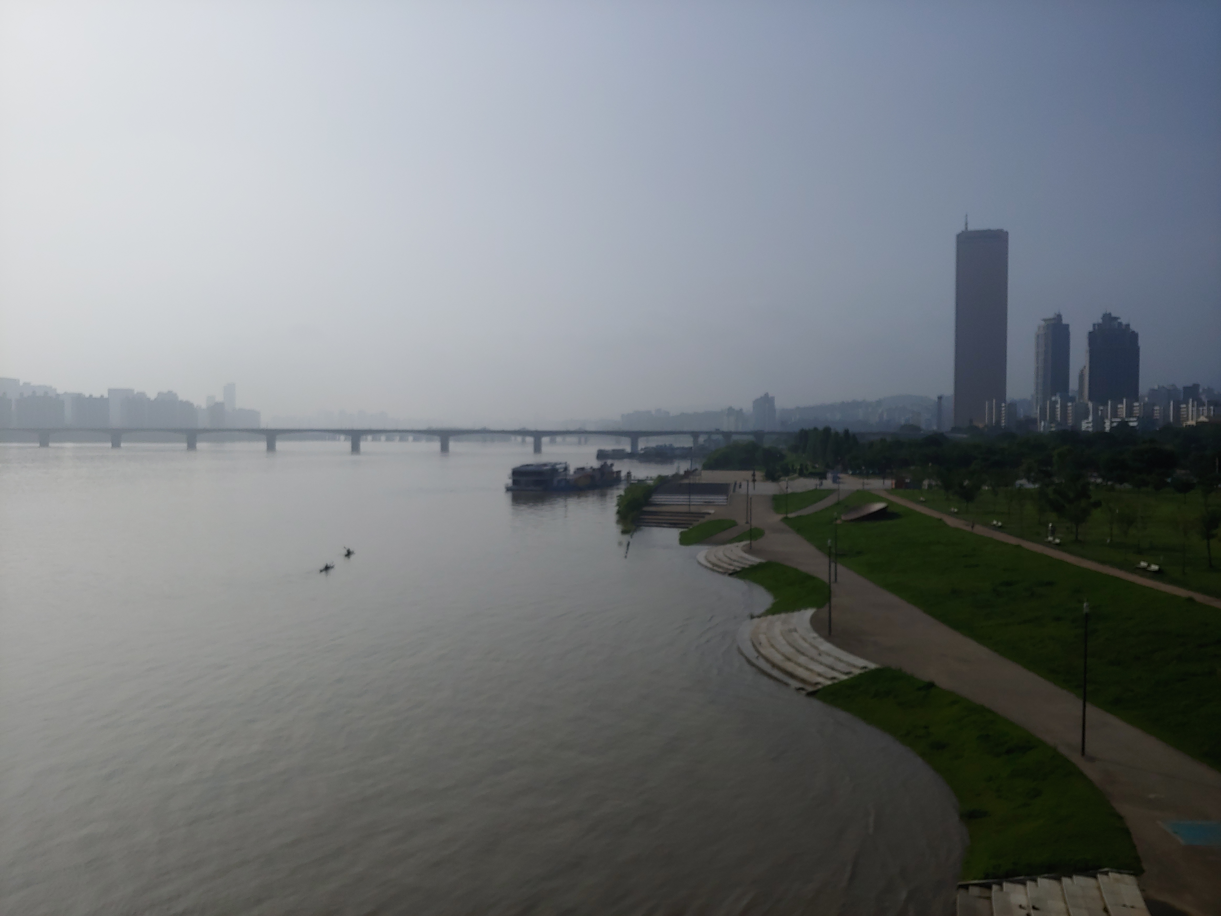 비가 많이 왔죠. 많은 비로 인해 사람도 많이 상하고... 한강을 보니 그동안 온 비 때문인지 물이 많이 불어난게 눈에도 보입니다. 강변 일부가 물이 남겨 있어요. 올해는 7월말까지 이 비때문인지 초복 중복, 대서까지 힘을 못 쓰고 지나갑니다. 아마도 말복이나 가야 여름 더위를 실감하겠죠.