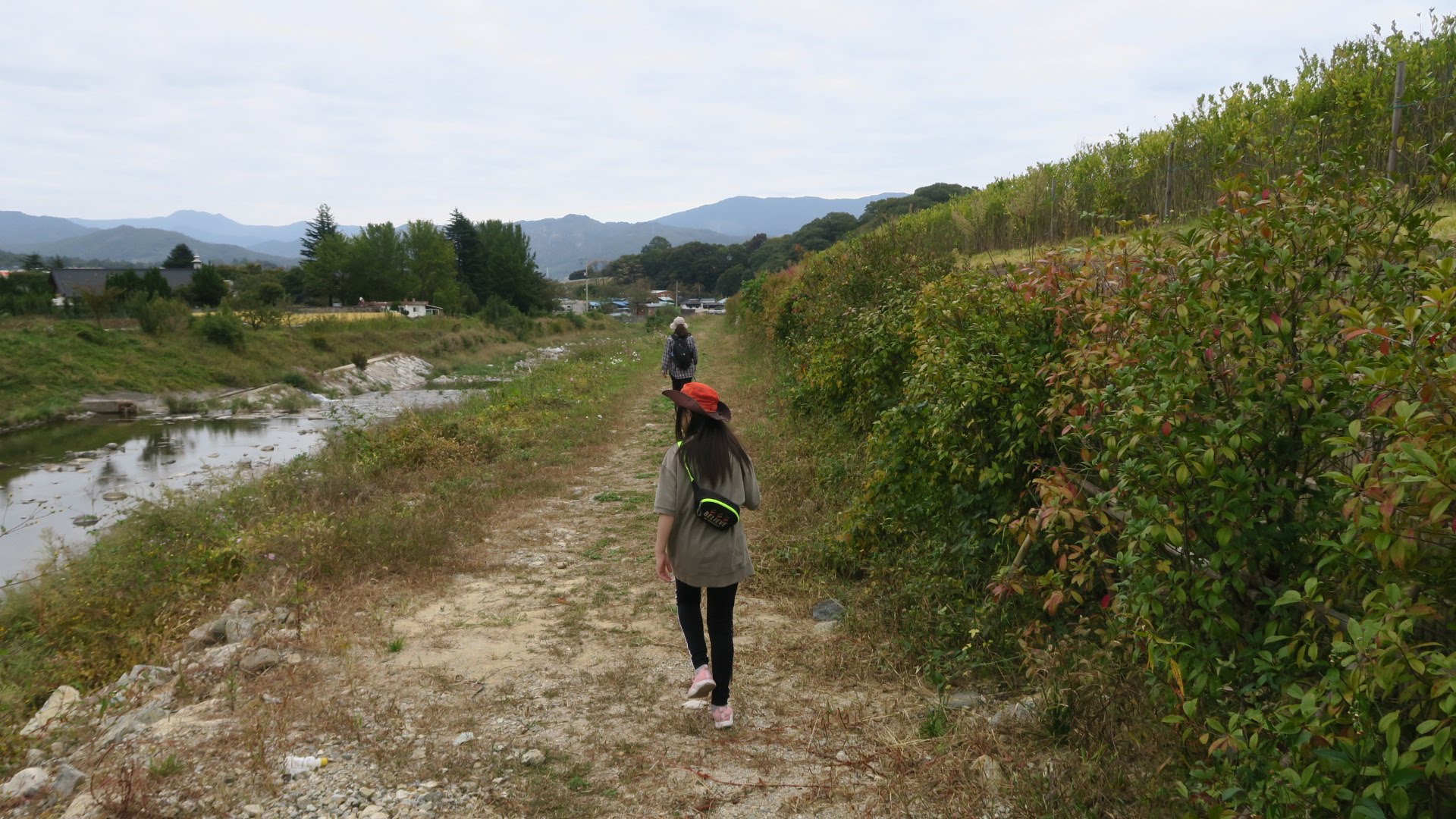 농공단지를 지나면 큰 물줄기를 만나게 된다. 경호강이라고도 불리는데, 남강의 상류부의 명칭이다. 경호강은 남강으로 바뀌고, 진양호에서 잠시 머물다가 북동쪽으로 물의 흐름을 바꾸어 함안군에서 낙동강과 합류한다. 경호강은 래프팅 장소로 인기가 많다. 여름철 이 길을 걷다 보면 래프팅을 즐기는 사람들도 만날 수 있다. 지금은 래프팅 시기가 아닌 데다 코로나로 인해 이곳의 휴양 산업도 큰 타격을 입었을 것으로 예상된다. 래프팅을 안내하는 표지판이나 강변이 을씨년스럽기까지 하다. 하지만 강이 훔친 사람 마음이 어디 래프팅뿐일까. 걷는 내내 경호강 주변에서 낚시를 즐기는 사람을 쉽게 볼 수 있었다. 경호강 낚시는 보통의 대낙이 아닌 릴낚시가 대부분인 것으로 보인다. 특히 은어낚시가 유명한데, 5월에서 8월까지가 한창때이다. 10월인 지금도 강에 들어가 낚시를 즐기는 사람들의 모습은 심심치 않게 보인다. 은어 철이 지났는데, 저들은 무엇을 낚기 위해 차가운 강으로 들어가 낚싯대를 흔들고 있는 것일까? 래프팅과 낚시 말고도 ATV(4륜차)를 즐기는 이들도 만날 수 있었다. 온 가족이 함께 왔는지 할머니부터 초등학생까지 10여 명 되는 사람들이 둘레길 코스에서 먼지를 풀풀 날리며 ATV를 타고 우리 옆을 지나갔다. 한참을 엔진 냄새를 맡으며 걸어야 했던 불쾌감이 좀처럼 가시지 않는다. ATV들이 많이 낡아 보였고, 바퀴마저 똑바로 굴러가지 않아 보여 위험해 보였다. ATV를 타고 어디까지 구경을 가는 건지 알 수는 없었지만, 걸으면서 구경하는 경호강의 풍경이 훨씬 조용하고 여유로움을 느낄 수 있어 좋다.