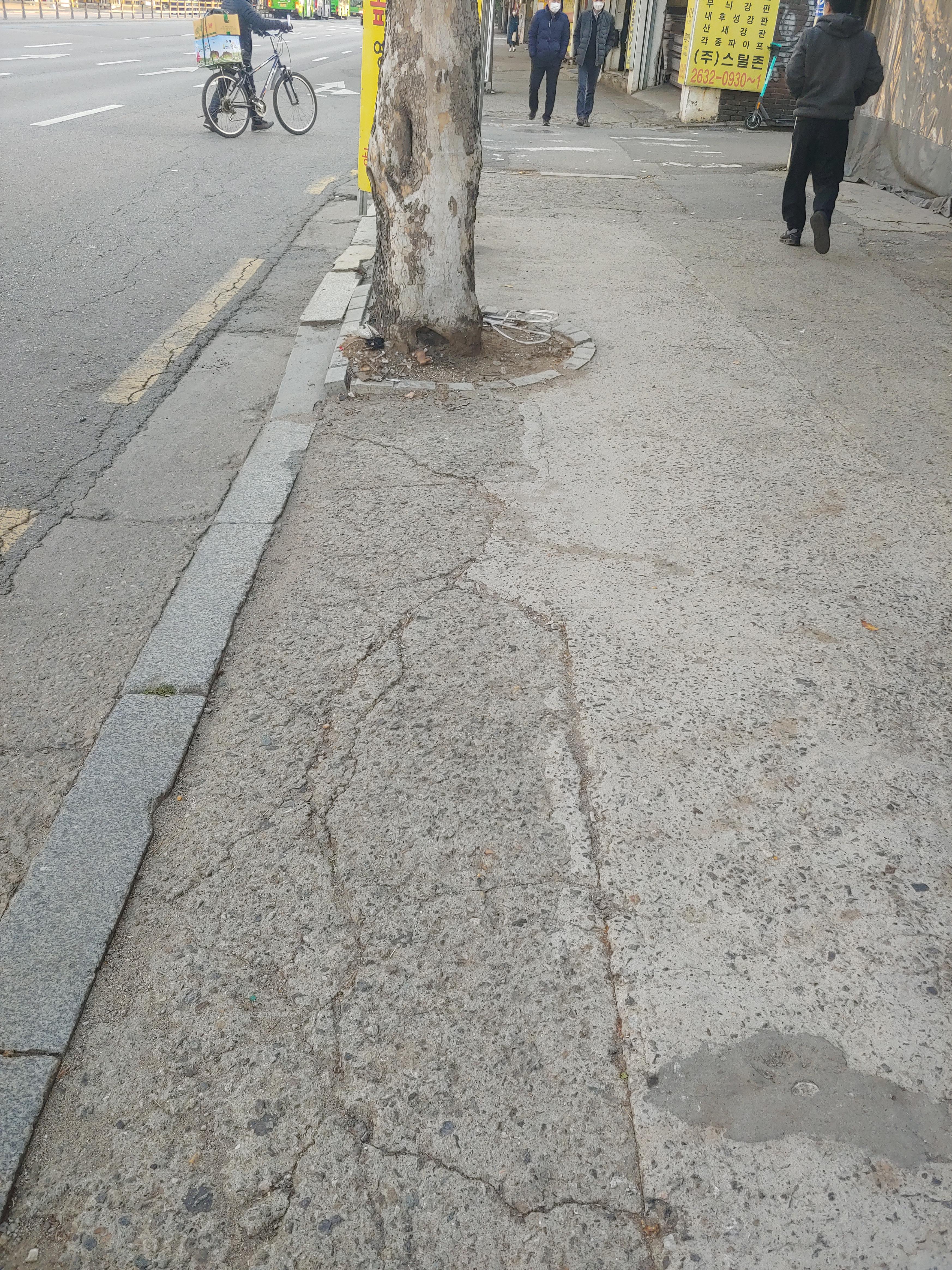 그럼에도 불구하고 경인로 주변길은 공장이 많아서인지 도로 상태가 좋지 않습니다. 보도블록보다는 시멘트 포장 길도 많고요. 철공소나 대장간, 목공소, 철강 자재나 관련 기기들을 판매하는 곳이 많으니 길이 견디질 못하는 것도 이유일 겁니다.