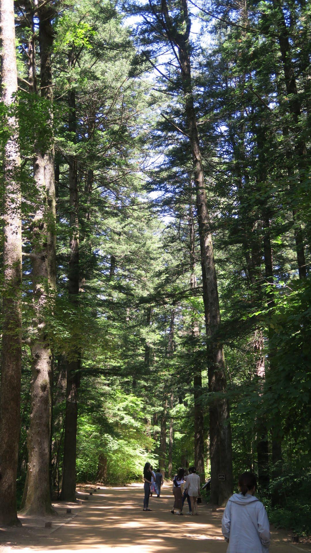 이번에는 지인들과 함께 걸었다. 높이 솟은 나무들이 드리운 그늘과 향기가 좋다.