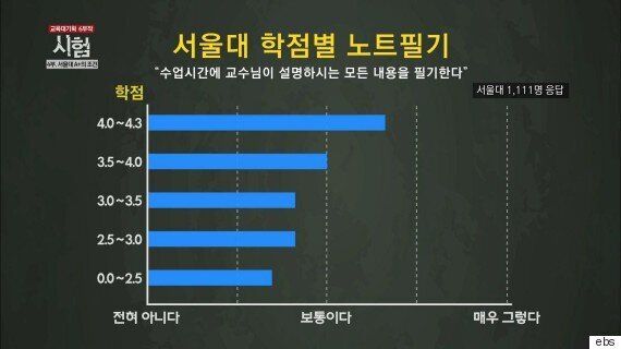 서울대의 교수학습자료 센터장이 서울대 성적 우수자들의 공부 방법을 조사했다. 서울대에서 2학기 이상 4.0 이상의 학점을 받은 학생을 대상으로 어떻게 좋은 성적을 얻었는지를 물었다고 한다. 그들의 대답은 "수업시간에 교수님이 설명하시는 모든 내용을 필기한다"였다. 성적 우수 학생들은 강의실에서 교수의 강의, 농담까지도 하나하나 노트북으로 속기한다. 속기한 내용을 바탕으로 한번 요약한다. 요약한 내용을 바탕으로 핵심을 다시 정리한다.
