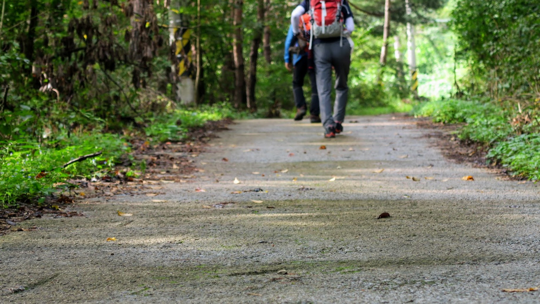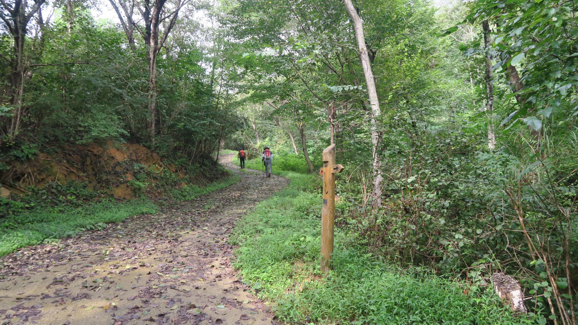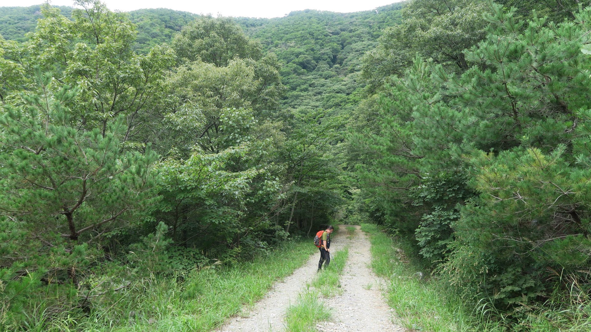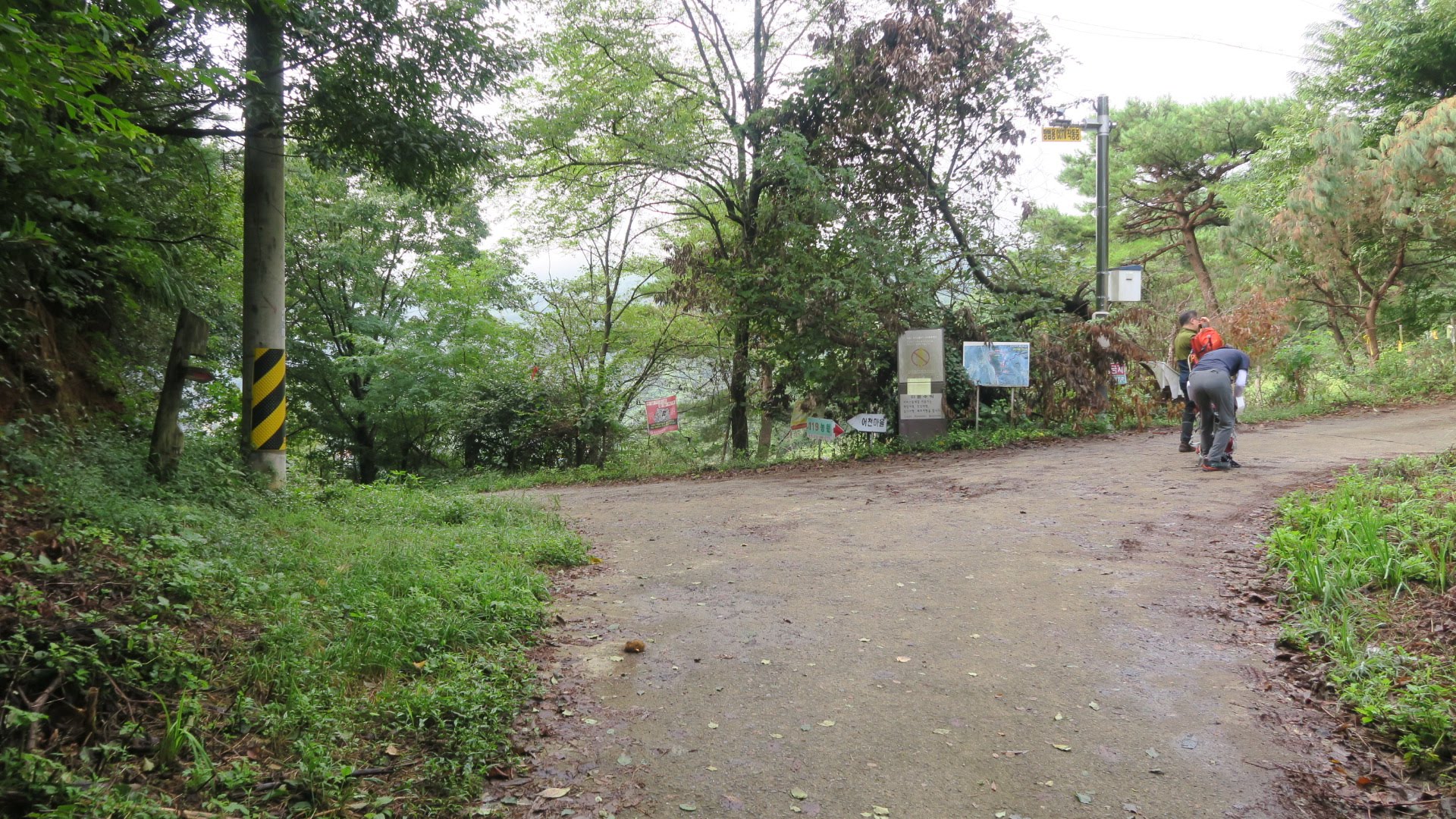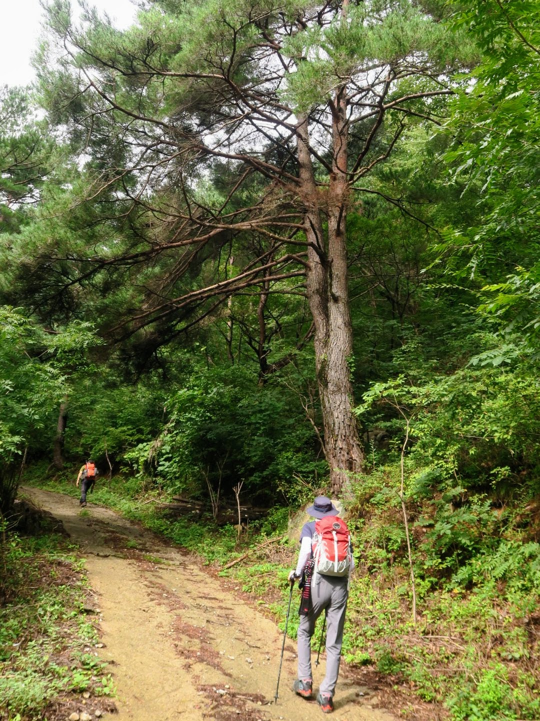 힘들게 올라온만큼 여기서 준비해 간 맥주와 약간의 간식거리로 배를 채웠다. 그렇게 한참을 쉬고나니 기운이 돌아왔다. 다시 나머지 길도 내쳐 나아가야 할 시간이 된 것이다. 다행히 여기서부터는 임도를 따라 완만한 내리막길이다. 말한마디 나누기 어려웠던 오르막길과 달리 내려가는 도중에는 셋이 나란히 뭉쳐서 가면서 이런저런 이야기들도 나눌 수 있었다.
