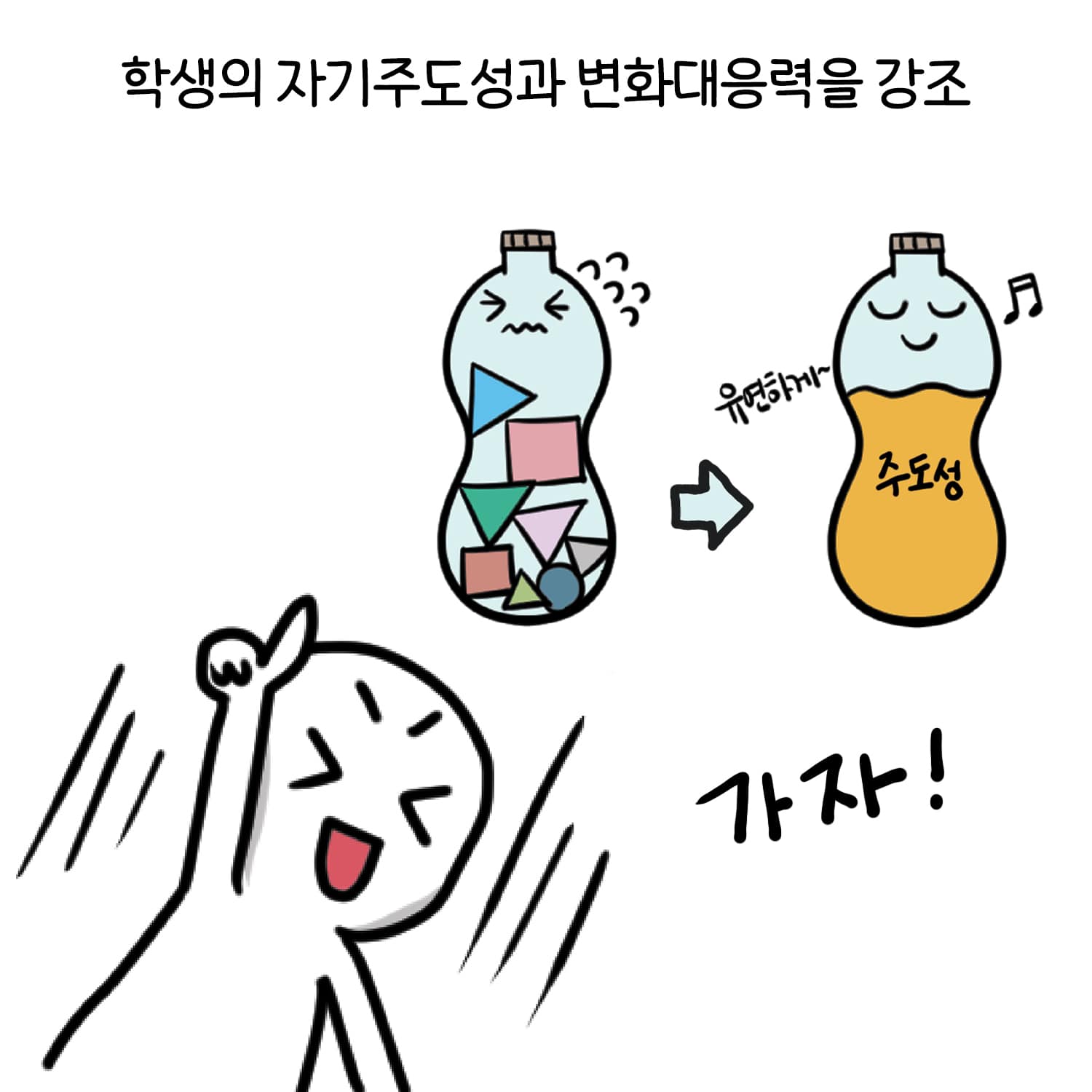 - 목표: 주도성 및 공동체 의식 함양 필요 → 삶과 연계한 역량 교육 강화