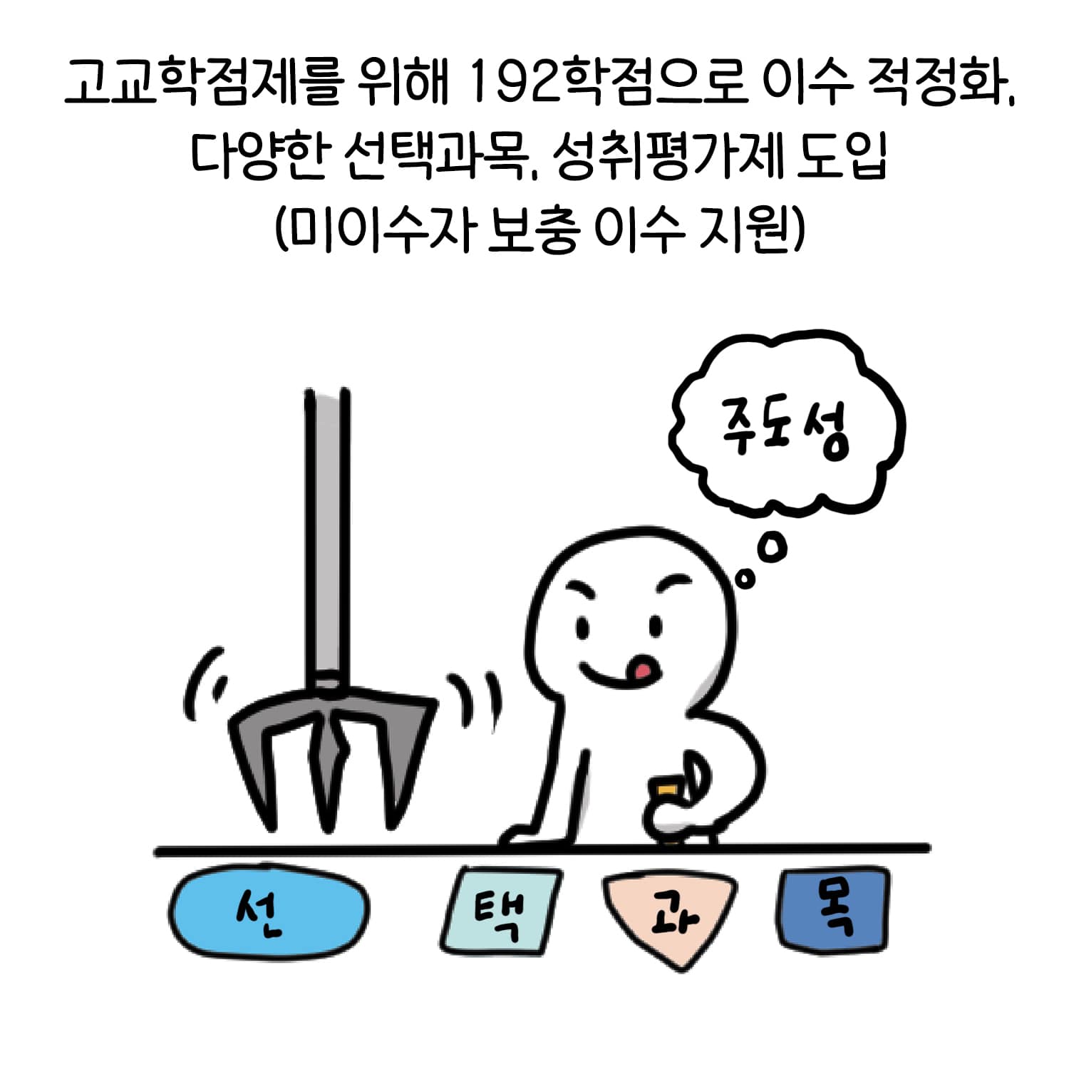 고교 학점제는 오래전부터 다음 교육과정의 핵심 내용으로 언급되었다. 예상했듯이 이번 총론 시안에서 자세히 언급되고 있으며 오는 2025년에는 전면 고교 학점제 실시가 예상된다. 고교 학점제는 '학점제'라는 말에서 알 수 있듯이 일정 학점을 이수하면 고등학교를 졸업하는 것을 말한다. 이와 함께 학사 운영 체제의 주요 내용 중 하나인 수업시수와 관련된 단위제를 학점제로 바꾸는 게 큰 변화이다.