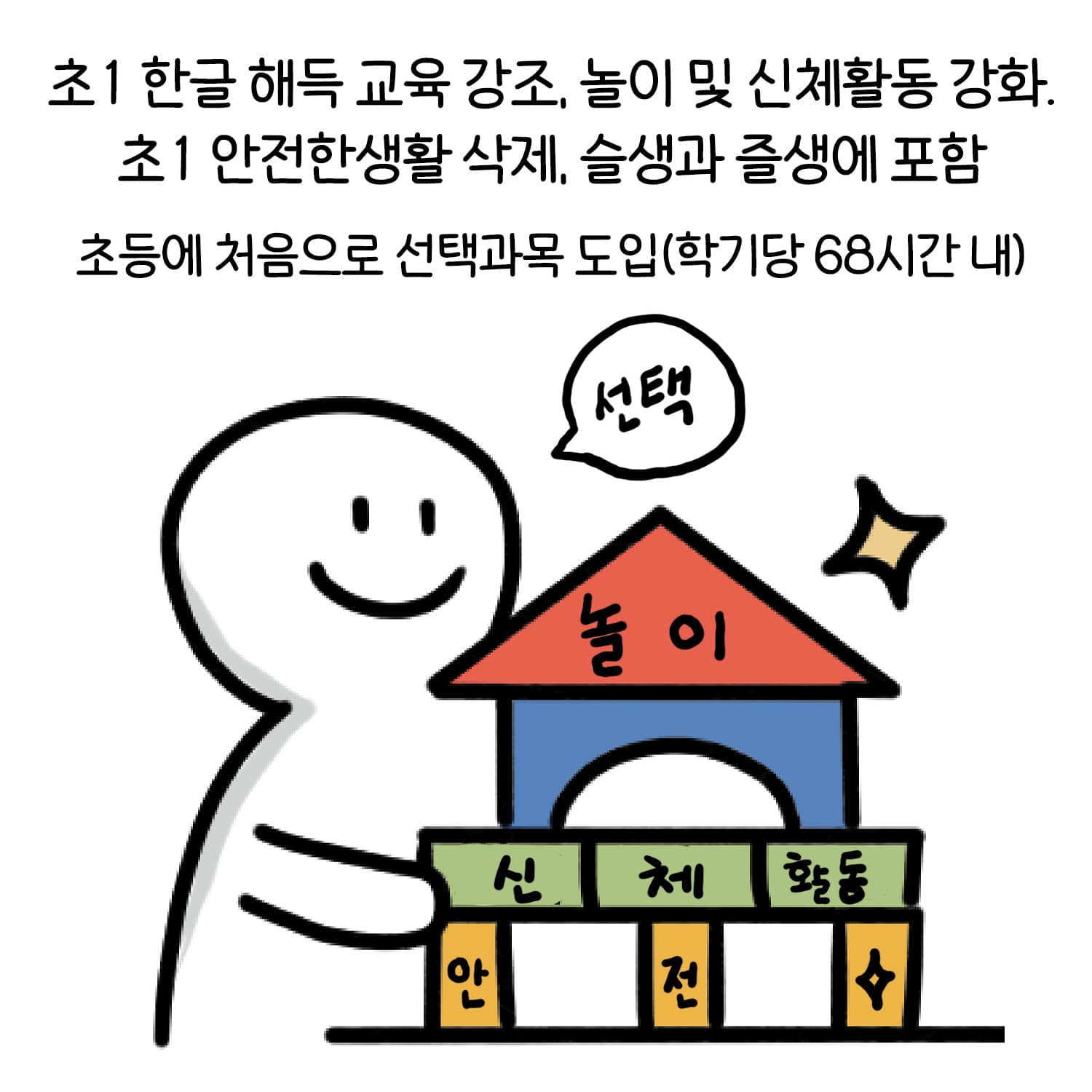 이와 함께 중학교부터 가능했던 학교장 재량 선택과목 선정이 초등학교에서도 가능해진다. 초등 학년별 선택 과목을 2개까지 운영이 가능하며 3~6학년까지 총 8개 과목을 운영할 수 있다.