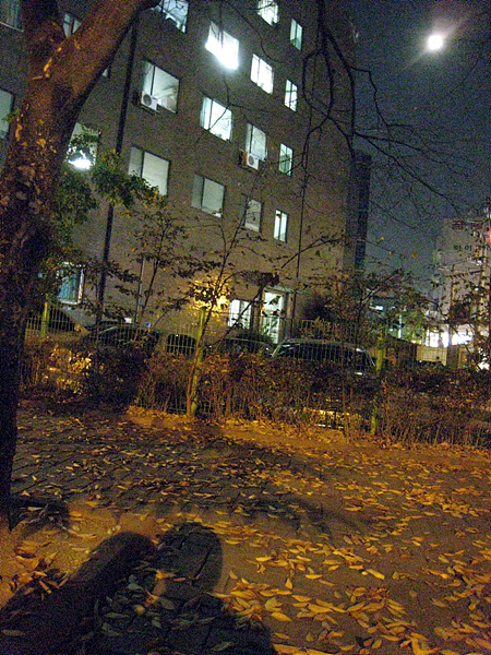 서부지원 옆 작은 공터. 초저녁달이 나뭇가지에 걸려,