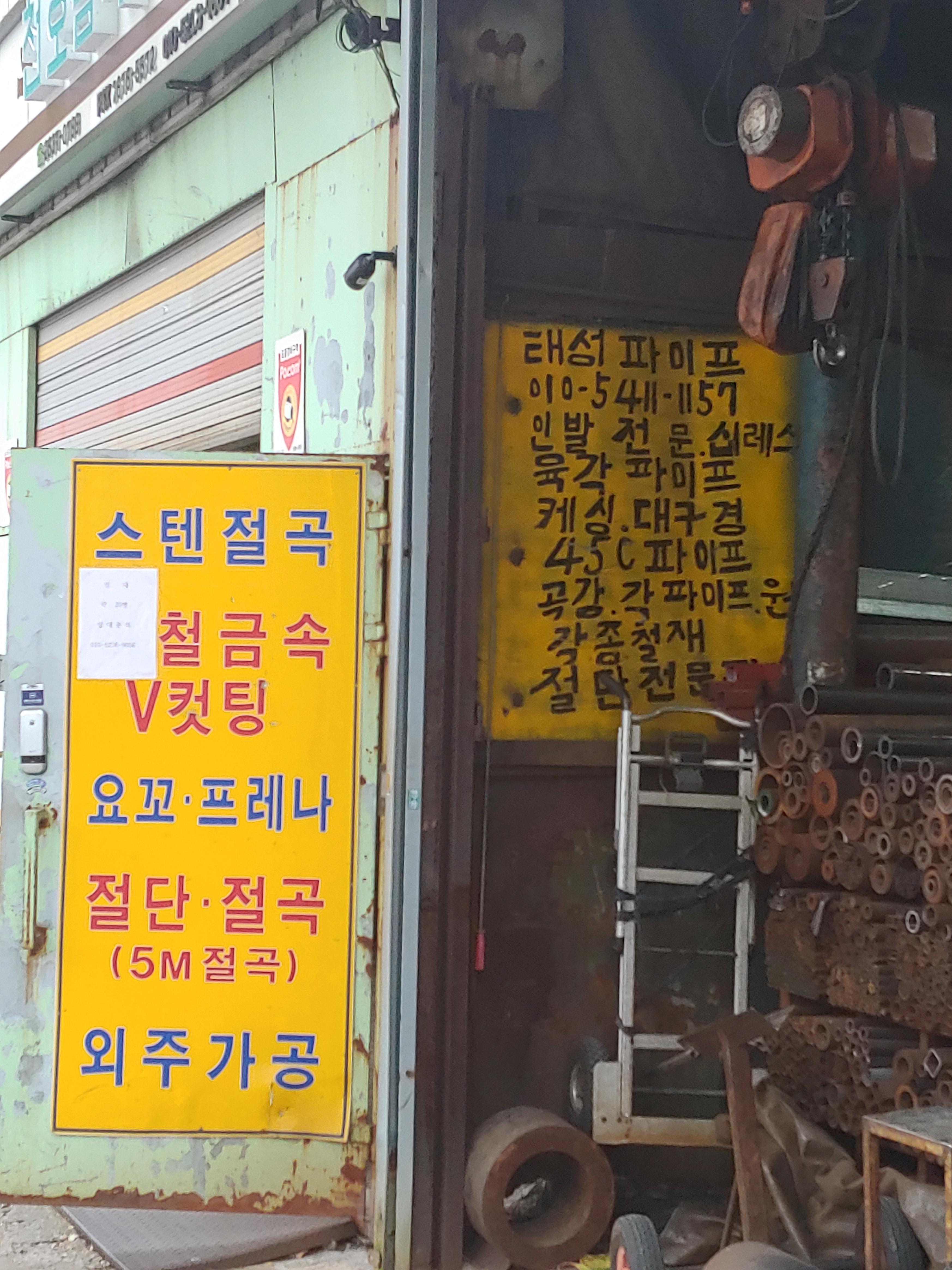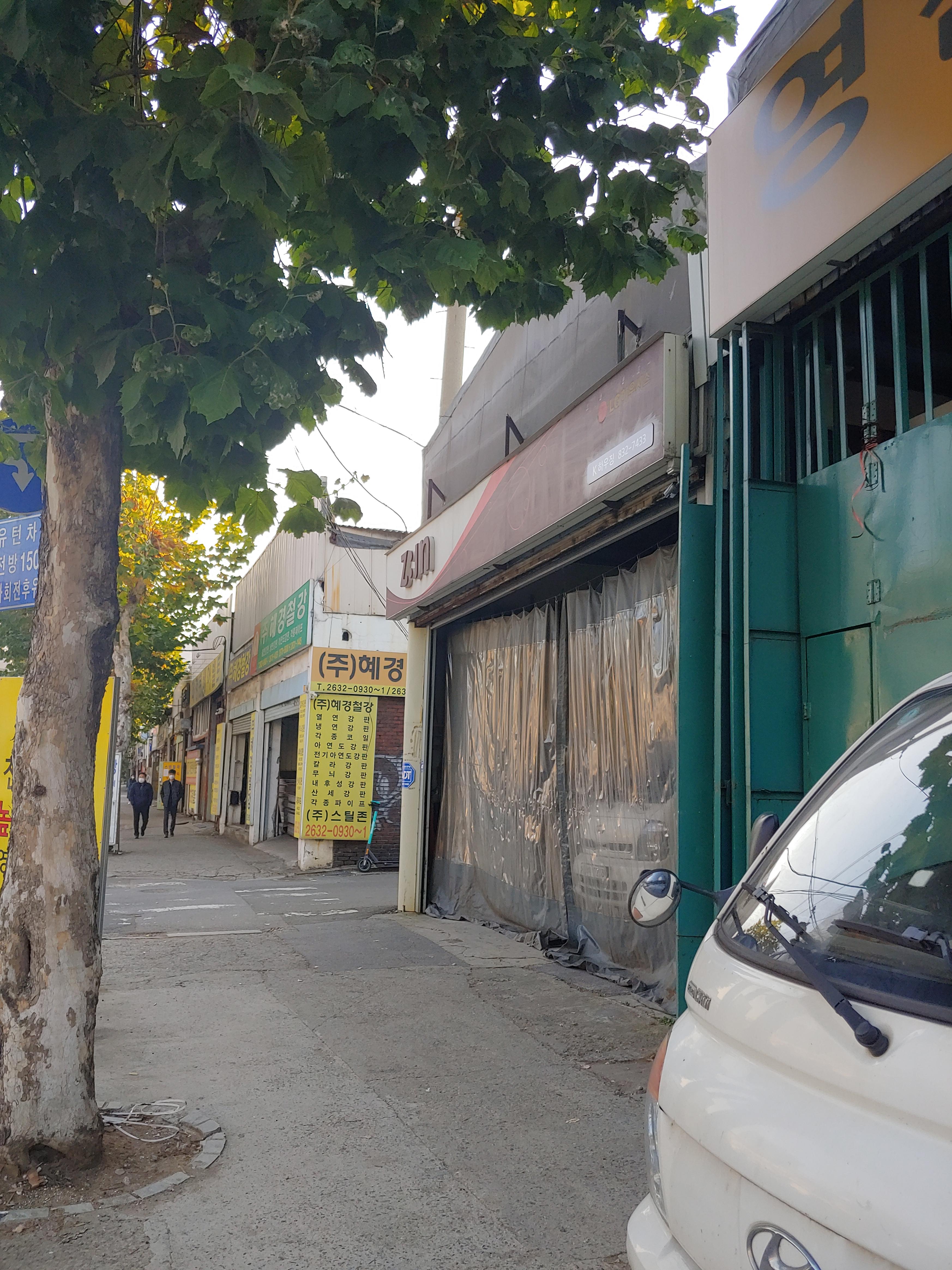 그럼에도 불구하고 경인로 주변길은 공장이 많아서인지 도로 상태가 좋지 않습니다. 보도블록보다는 시멘트 포장 길도 많고요. 철공소나 대장간, 목공소, 철강 자재나 관련 기기들을 판매하는 곳이 많으니 길이 견디질 못하는 것도 이유일 겁니다.