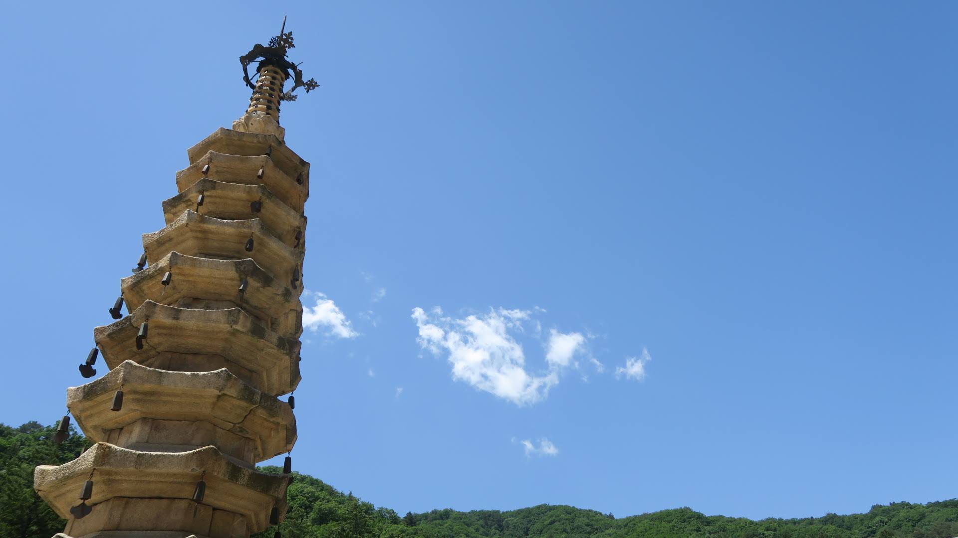 월정사 팔각구층석탑에 구름이 걸렸다.