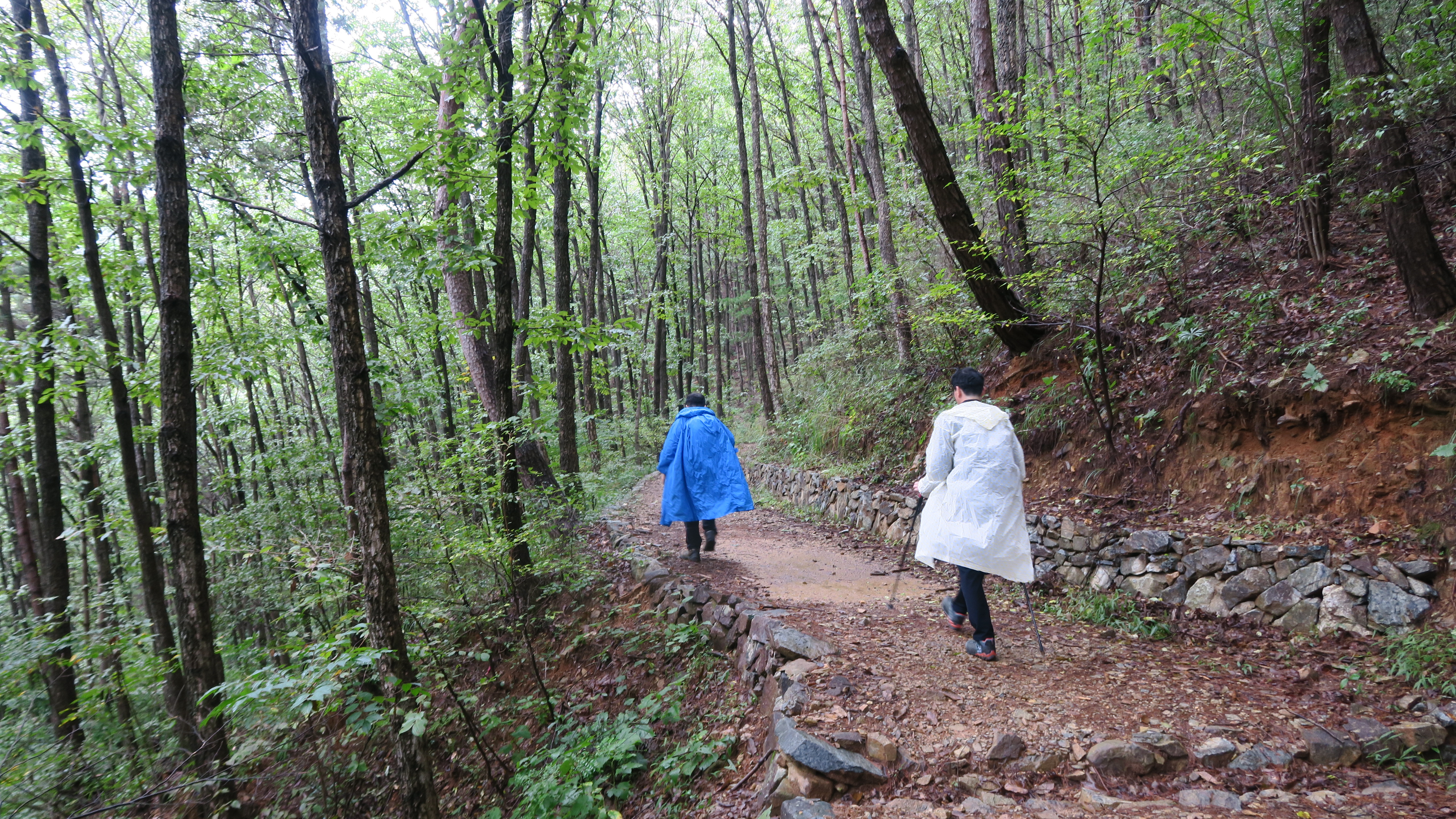 마근담에서부터는 흙길이 아닌 시멘트-콘크리트 길이다. 여전히 주위는 높은 산으로 에워싸여 있어 묘한 분위기를 연출한다. 게다가 이날 따라 바람마저 거세어 온 산의 나무들이 춤을 추는 모습을 볼 수 있었다. 약한 잎들이 바람에 떨어져서 하늘 여행을 떠나는 모습을 보니 가을이 실감난다.