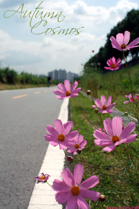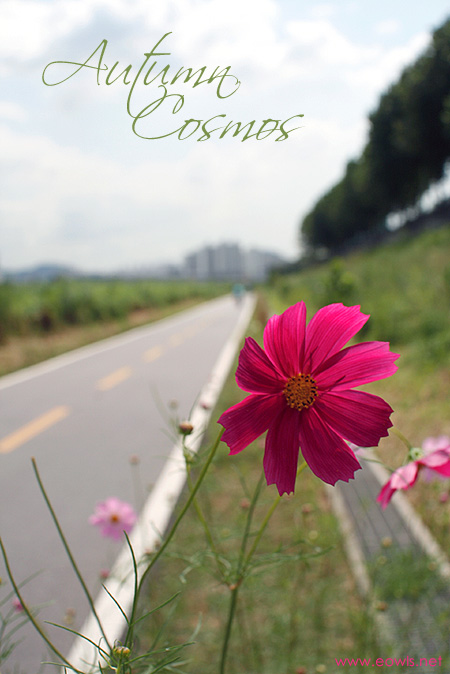 코스모스 : 국화과의 한해살이풀. 높이는 1~2미터이며, 잎은 마주나고 깃 모양으로 갈라진다.